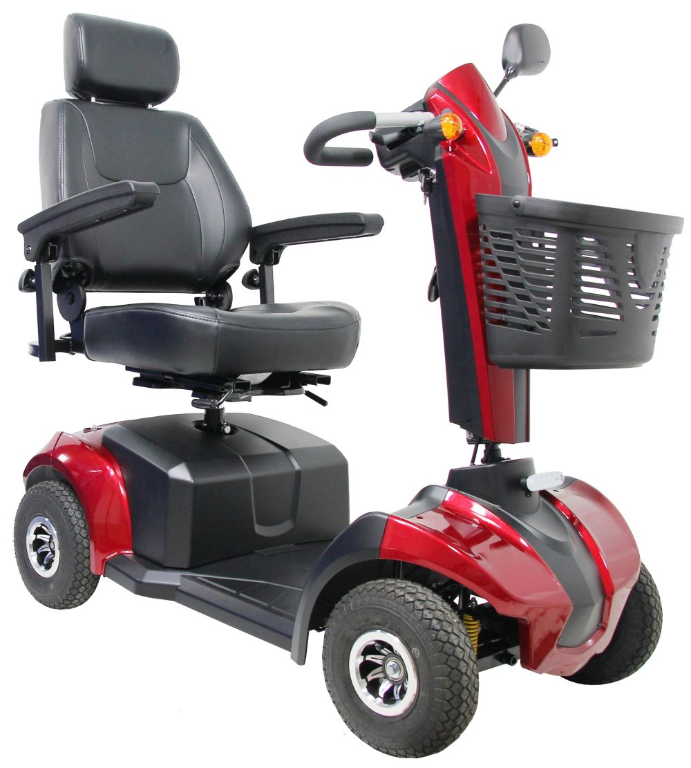 Kapitänsitz drehbar und in der Länge verstellbar für größere Beinfreiheit. Mit Kopfstütze, verstellbarer Rückenlehne und abklappbaren Armlehnen. Verstellbare Lenksäule mit übersichtlichem Bedienfeld. Ausgestattet mit kompletter LED Beleuchtung, Blinker, Warnblinkanlage, Zusatzhandbremse, Rückspiegel und Einkaufskorb vorne.